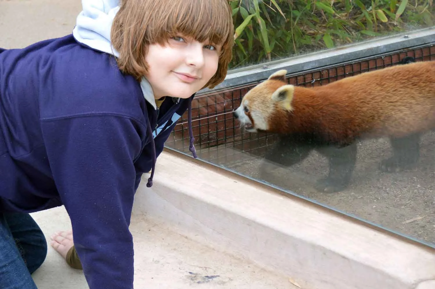 I met Tenzing at the Sacramento Zoo nursery. He was just born. 1 year later he was brought to the San Francisco zoo which I visited almost every day. He recognized my scent. He interacted with me mainly him coming up to me and smelling my hand.
